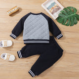 2pc Baby Boys Letter Patch Raglan Sleeve Cotton Jacket and Trousers Set for BaBy Clothes