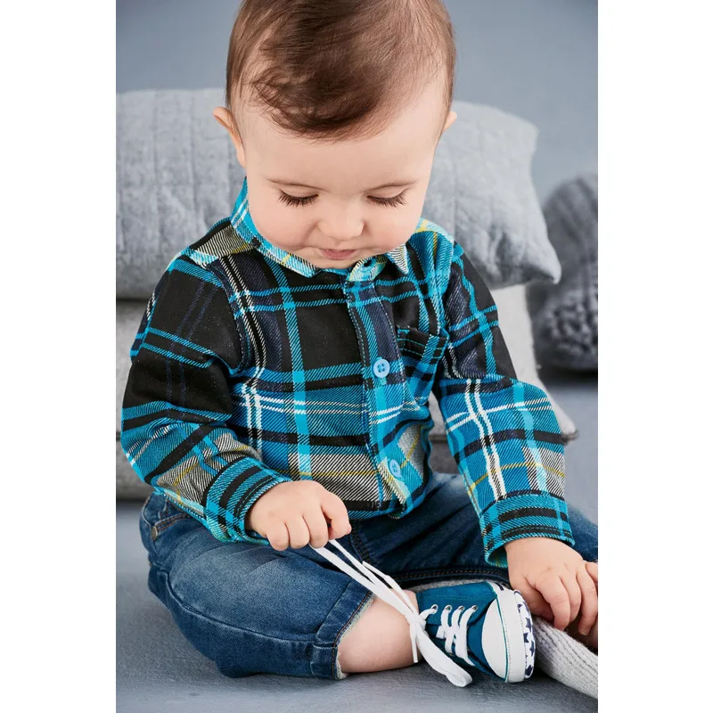 Baby Boys 2Pc Little Gentleman Plaid Onesie Button Down Shirt and Stylish Jeans Set.