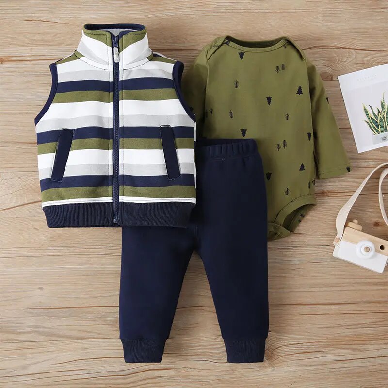 Baby Boys Stylish 3Pc Vest, Cotton Bodysuit and Pant Sets. Ages 3M~24M