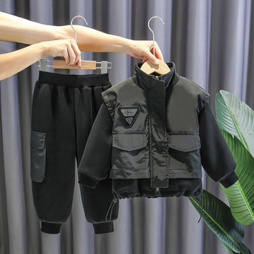 Boys Urban Style 2Pc Cargo Vested Sweatshirt and Pant Set
