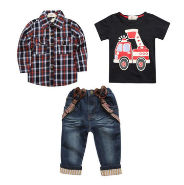 Baby Boys Stylish 3Pc Set. Long Sleeve Plaid Shirt, T-shirt & Jeans