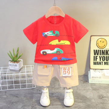 Kids 2Pc Summer Set, Cartoon Cars T-Shirt & Cargo Shorts