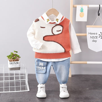 Kids 3Pcs Sweater Vest, shirt, & Pants Sets, For Both Girls & Boys