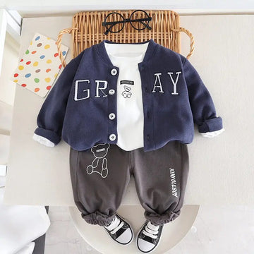 Kids 3Pc, Long Sleeve Shirt, Sweater and Pant Set.