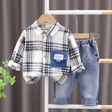 NEW Fashion, Baby Boys 2Pc Cotton Plaid Button Down Shirt and Jeans Sets