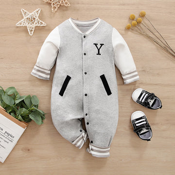 Baby Boy Letter Embroidered Spliced Long-sleeve Sporty Jumpsuit