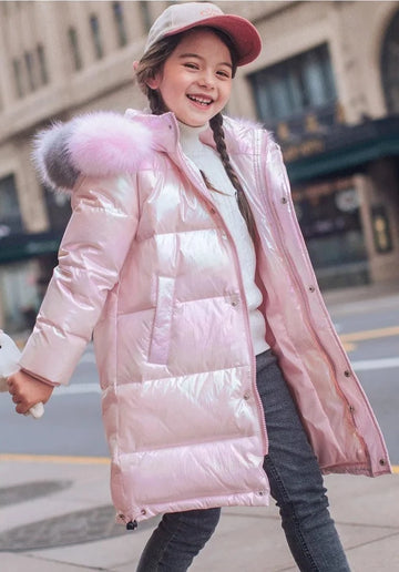 SPECIFICATIONS Style: Fashion, Trendy, Stylish, Cozy Material: Cotton, Polyester Fiber Filling: White Duck Down Clothing Length: long Decoration: Fur Collar Season: Winter Item Type: Outerwear & Coats Age Range: 5-14y Collar: Hooded Closure Type: Zipper Sleeve Style: Regular Gender: Girls...