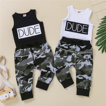 Baby Boy 2Pc Fashion Tank Top & Camouflage Pants Set.