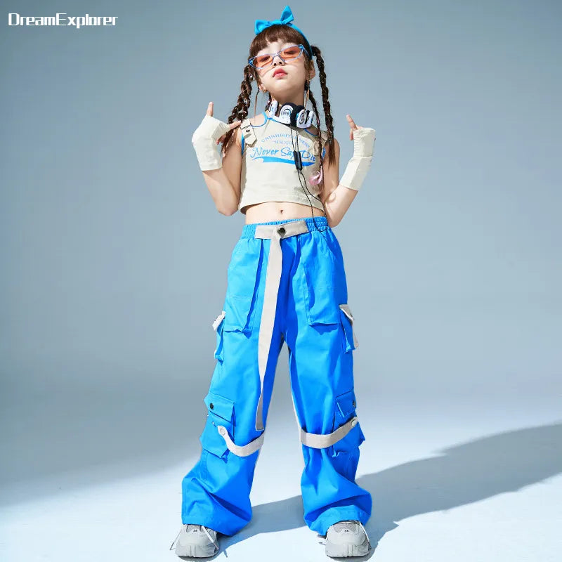 Girls Urban Hip Hop Style 3Pc Crop Tops and Baggy Cargo Pants. (Each Item Is Also Available Separately)