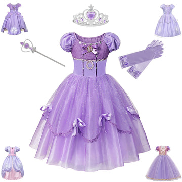 Princess Birthday Party Ball Gown With Puff Sleeve & Accessories.