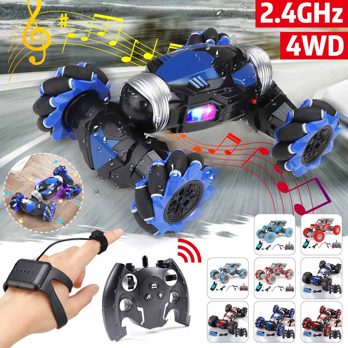 Kids 4WD Road Drift Gesture Induction RC Stunt Car with Music