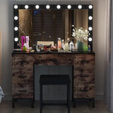 Vanity Desk with 14pcs LED Bulbs: The vanity is equipped with 14 LED bulbs, which add an extra light supplement, whether day or night, the dresser can provide you with soft light, providing the perfect lighting environment to make your makeup look more refined.