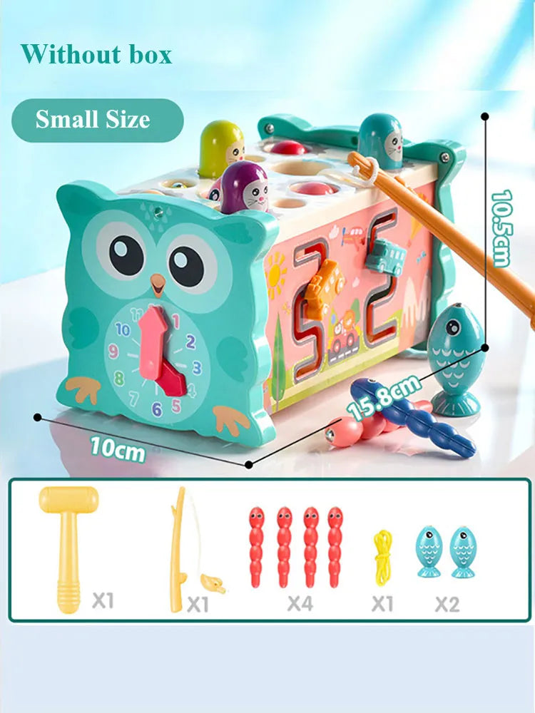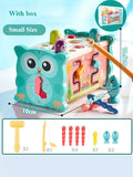 Baby Montessori Fishing Owl Learning Cube with Educational Clock, Kids Hammer Game, Music ,Puzzle and Piano Set